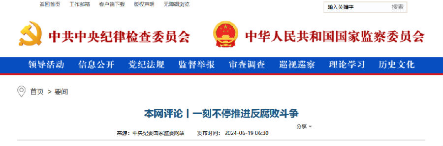 6月19日,中央紀(jì)委國家監(jiān)委網(wǎng)站發(fā)布《本網(wǎng)評論丨一刻不停推進(jìn)反腐敗斗爭》一文指出,堅持個案查處與系統(tǒng)整治相結(jié)合,深化整治金融、國企、能源、煙草、醫(yī)藥、基建工程和招投標(biāo)等權(quán)力集中、資金密集、資源富集領(lǐng)域的腐敗,清理風(fēng)險隱患。