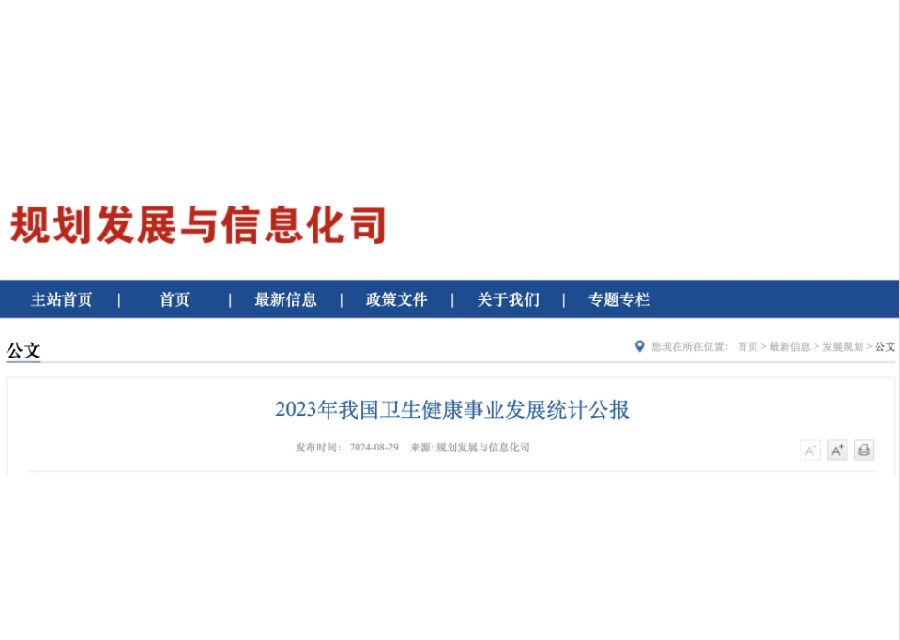 8月29日,國家衛(wèi)生健康委發(fā)布《2023年我國衛(wèi)生健康事業(yè)發(fā)展統(tǒng)計(jì)公報(bào)》。