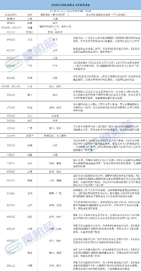 按照國家醫(yī)保局的工作安排,9月底前,全國各省份完成國家飛檢現(xiàn)場檢查。距離9月底還有近兩周的時(shí)間,國家醫(yī)保基金飛行現(xiàn)場檢查已經(jīng)覆蓋了絕大多數(shù)省、市、自治區(qū)。