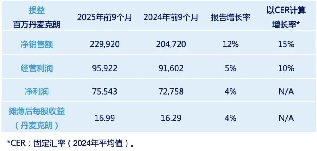 目前,諾和諾德已經(jīng)對2025年做出展望,預計銷售增長率以CER計算為8-11%;經(jīng)營利潤增長率以CER計算為4-7%,其中全公司范圍轉(zhuǎn)型預計會為全年帶來約80億丹麥克朗的負面影響。以丹麥克朗計算的銷售和經(jīng)營利潤增長將比以CER計算的增長率分別低4個和6個百分點。